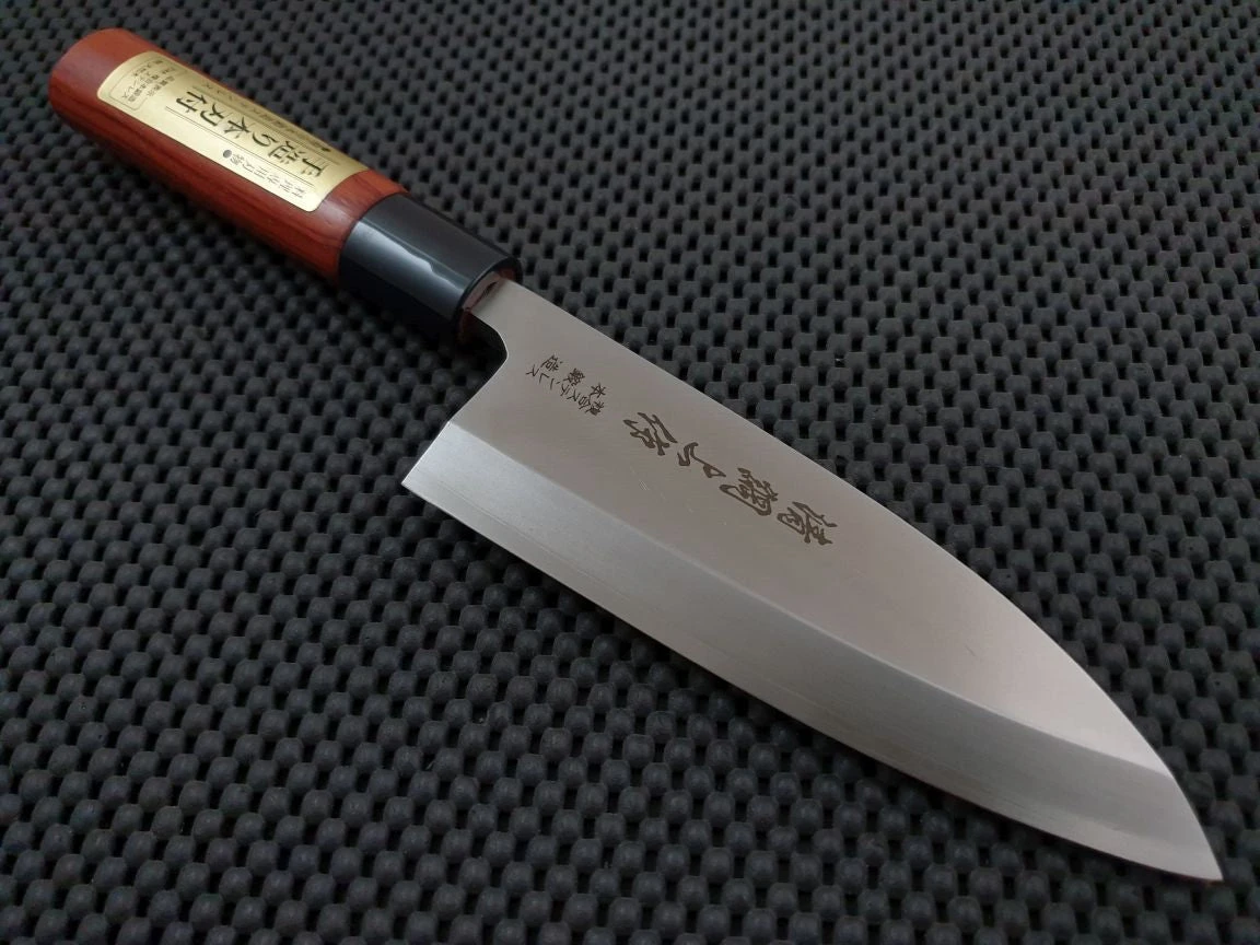 Most Deba and Funayuki knives have a single bevel grind, with a thicker, heavier and shorter overall build. Although they are generally a specialist fish knife, some modern chefs do use these knives for other tasks such as breaking down meat and poultry. When used with the right ingredients, it can be an awakening experience.