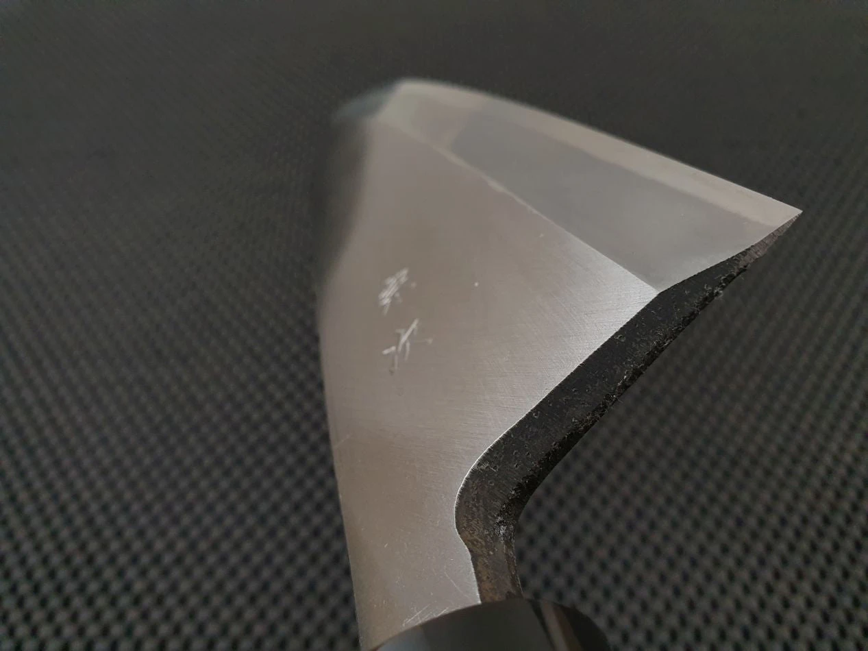 Most Deba and Funayuki knives have a single bevel grind, with a thicker, heavier and shorter overall build. Although they are generally a specialist fish knife, some modern chefs do use these knives for other tasks such as breaking down meat and poultry. When used with the right ingredients, it can be an awakening experience.